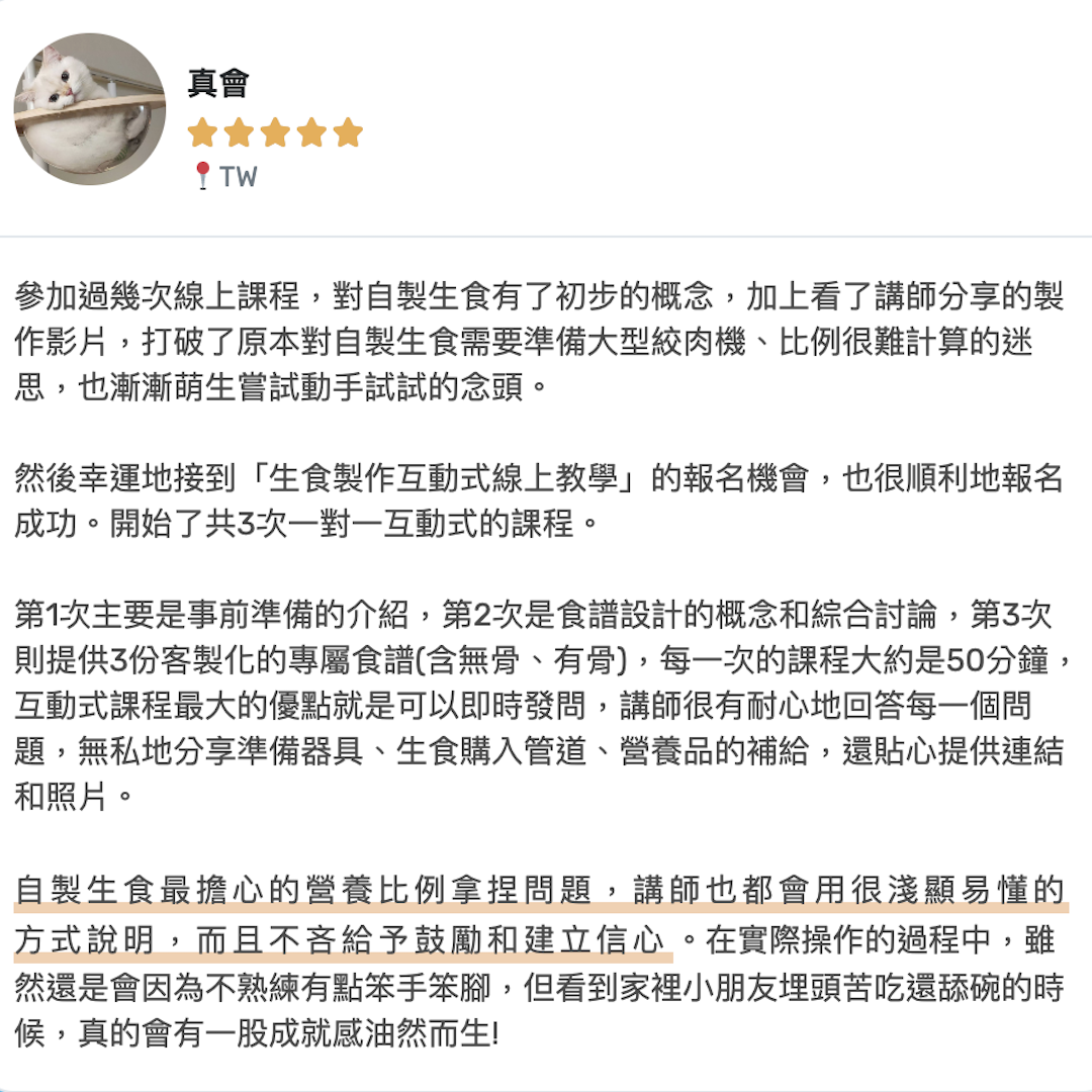 自製貓生食教學陪跑|學員回饋